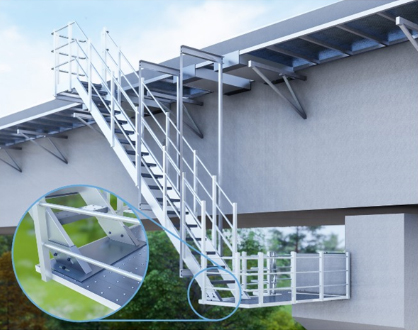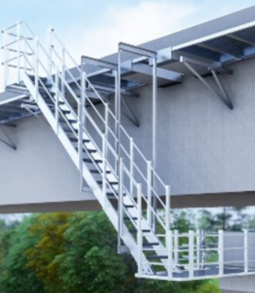 교량의 안전성을 점검하기 위한 통로의 접근시설인 유지관리용 점검계단을 설치시 현자의 여건에 맞추어 길이 조절이 가능하도록 현장적용성을 높인구조