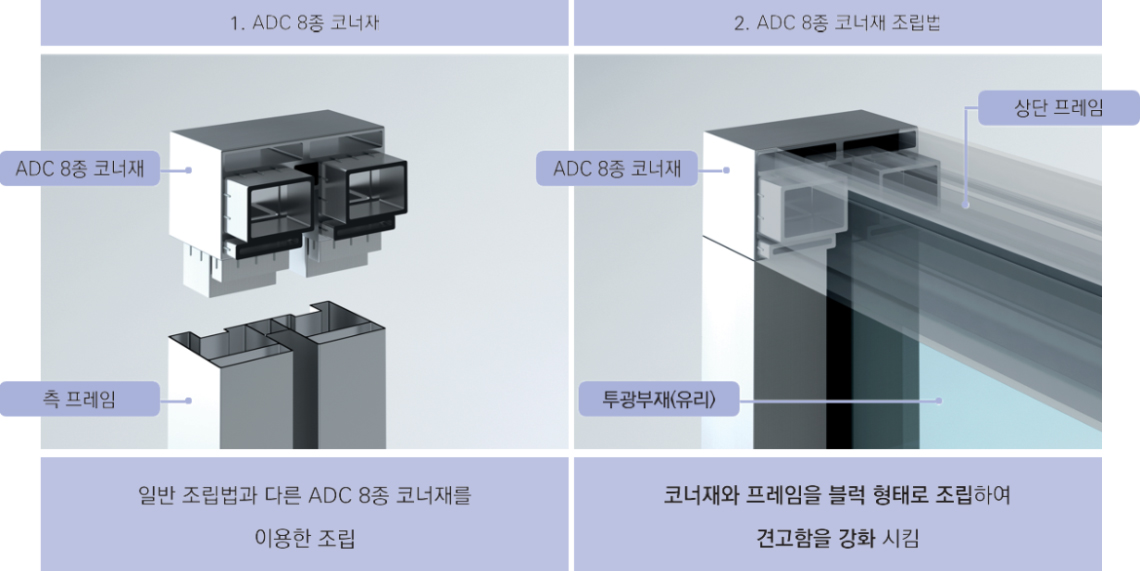 투명형 방음판 유리파손 방지 기능 강화 코너재를 활용 한 조립법