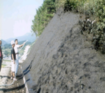 비탈면의 성ㆍ절토, 마사토구간에 식물생육에 양호하게 하는 SS(습식)을 취부하여 녹화하는 공법